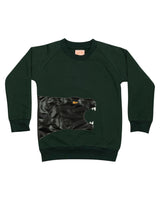Adding a twist to the classics is Wauw! Our green organic cotton sweatshirt features Blaise, our friendly panther made of faux leather. He will follow you everywhere you go!