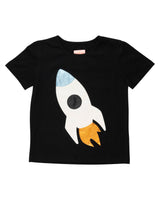 CAPOW! Join us in our space adventures! Fight alongside the galaxy’s most renounced superheroes to defeat evil aliens. Always make sure to wear your superhero costume. To the Moon is our organic cotton t-shirt with a sewn-on space expedition rocket ship. This t-shirt is optimal for big adventures to the playground, for now at least.