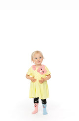 WAUW CAPOW by Bangbang Sleepy Cat, a loose fit yellow dress, featuring a fluffy pink cat around the neck. The fabric of the cat has small threads coming from it, giving it that fluffy and furry look. Yield to the comfort and coziness of this dress and join Sleepy Cat on the most relaxing attire, making your day a breeze. Pair together with the Dining Duo tights w. Feet., or the Kiss Kiss knee socks, and the Scrunchie Fluffy hair tie for the cutest and most comfortable outfits.