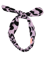 WAUW CAPOW by Bangbang Molly Leo is a super cute purple leopard printed headband that is tied in a knot, as a bow, on the front.