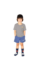 This little guy is very shy, so he always hides in the left breast pocket of our striped t-shirt. Befriend him and convince him to come out and play!