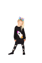 CAPOW! Join us in our space adventures! Fight alongside the galaxy’s most renowned superheroes to defeat evil aliens. Always make sure to wear your superhero costume. Adventure is our organic cotton tights with many space expedition rocket ships. These tights with great are optimal for big adventures to the playground, for now at least.