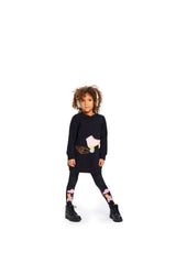 A pair of black Wauw Capow tights in a soft organic cotton blend. We have added flying roller skates and clouds for a cool cute look. These roller skate tights are different in the best possible way.