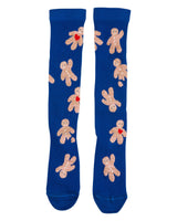 WAUW CAPOW by Bangbang Gingerbread man, is a pair of blue knee socks, featuring cookie people on each sock. These knee socks are absolutely adorable and will make you crave those delicious Christmas cookies.
