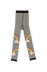 WAUW CAPOW by Bangbang Lucky Rainbow is a pair of black and white striped tights, featuring colorful woven rainbows and pink clouds on each leg. These tights are specially designed to bring luck, wearing these will make the Lucky Rainbows work their magic :)