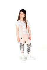 Nosy Ninus is our pair of cosy organic cotton tights with feet. The black and white horizontal stripes give a classic element to the tights, while the two bottom bunnies give that Wauw Capow funky twist! Most of the time more is better, so we encourage you to go wild and match these tights with even more colour and pattern!