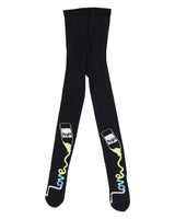 A pair of simple black tights with a little Wauw Capow magic added. From the WAUW bottle on the tights, flows the word ‘Love’ in beautiful pastel colors, giving the tights a little extra to add to any chosen outfit. These tights are made with organic cotton.