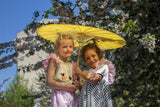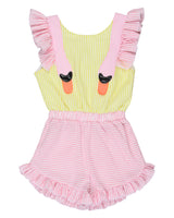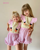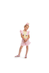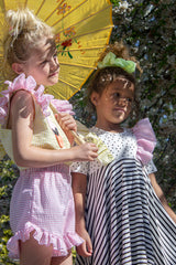 Our Mexico playsuit is back in a beautiful striped summer version - this time in a fabric combination, which is both light and soft when you wear it. The playsuit has ruffles at the sleves as well as the legs and has an elastic waistband. Immerse yourself into our Wauw Capow world and let yourself get hugged by our friendly swans in this playsuit.