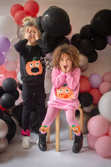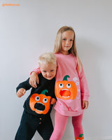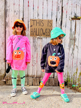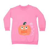 Harley Halloween is a super cute pink sweatshirt dress, with a brushed inside for a fleecy finish, perfect for thise colder days. This dress is made in a soft organic cotton, making it super comfortable to wear. We have added a fun/scary orange pumpkin to the front and the word ‘Boooooo’ in embroidered letters. This dress is perfect for Halloween and with its balance between scary and adorable, what's not to like.
