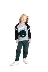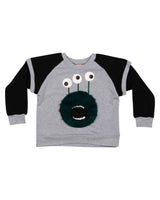 WAUW CAPOW by Bangbang Milo sweatshirt is a grey and black sweat, featuring a soft 3-eyed monster on the front. Do not worry - the monster might seem a little scary at first, but you can without fear put your hands in his mouth and we promise he won't bite!