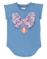 Say hello to our Nova Birdsong dress - it's adorable. The dress is a simple sweatshirt dress with short sleeves, but on the front you will see that beautiful bird with big wings. We are in love with the birds of this collection and this is an absolute favourite. The dress is made from organic cotton and the inside is brushed, which makes it a little extra soft.