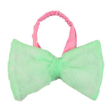 Our Olga headband is a statement piece, for sure. The band is soft and made with elastic, for the optimal comfort and the bow is padded and oversize in a beautiful mint green fabric.