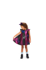 Theresa is a black and pink metallic wide dress with capped sleeves. This dress shimmers at all times and is perfect for those special festive occasions. We have added shimmery padded bows to the dress and it has a one-button closing at the back. The dress is fully lined with cotton, making is soft and comfortable to wear.