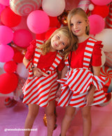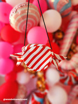 WAUW CAPOW by Bangbang Bon Bon Bag, is a super cute shoulder bag, shaped like a piece of wrapped Christmas candy. The bag is opened and closed by a zipper at the top. This bag is the perfect Christmas accessory and as a bonus it can hold all of your Christmas candy! Mara has added the bag to the Snow Friend dress, for a little extra Christmas-cuteness.