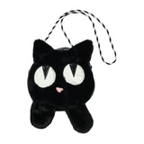 A beautiful black shoulder bag. The front has a black fluffy cat on it, made from faux fur and the bag compartment is made from a faux leather material in 100% polyester. The bag has a zipper, a beautiful purple lining and a black/white shoulder strap. It's the most adorable accessory.
