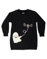 Please meet our happy new ghost! She's so lovable and she just loves her bat balloon - she takes it everywhere. The inside of this dress is brushed, which makes the fabric super soft and cozy to wear. This is a perfect dress for Halloween and all the other days as well. Who's does not love a happy ghost? If you love this dress, we guarantee you will love her brother, the Happy Booh sweatshirt - he's just as cute and lovable.