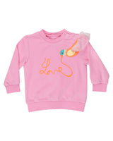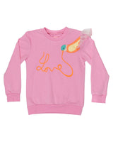 LOVE is all you need! And maybe a soft organic sweatshirt with a beautiful bird on the shoulder to keep you warm on those colder days. Our Lucia Love sweatshirt is beautiful and comes in the prettiest pink color with a vibrant orange Love written on the front.