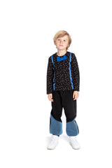 WAUW CAPOW by Bangbang Max Blue pants combines comfort and coolness! The pants have an elastic waistband and cool fishnet looking material from the knee down. Perfect for playing both inside and outside.