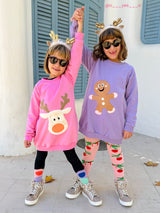 Noel is our adorable holiday sweatshirt dress, made in a beautiful purple color, a soft organic cotton fabric and with a brushed inside for a fleecy finish. This dress is perfect for those colder days. We have added a gingerbread cookie to the front in a mix of faux leather and suede, for a fun finish.