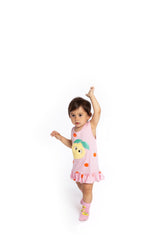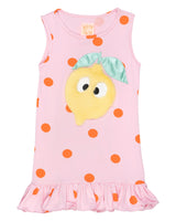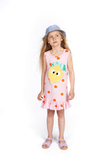 This is that perfect summer dress you've been looking for! We have mixed our signature dotted fabric with a super soft and furry Lemon with shiny green leafs, which has been sewed on to the dress. And finally, to overload the cuteness, we couldn’t resist adding some ruffles to the bottom of the dress! As we said…the perfect summer dress.