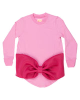 The Ursula Pink dress is an absolutely adorable and perfect dress for both everyday play and for that very special family gathering. Cookie has paired the dress with our Aggi leggings and a fantastic bow in the same material as the big beautiful bow on the dress - this gives the dress a more everyday cool look for your little one.