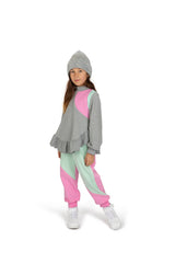 Willa is our more feminine take on a classic sweatshirt. The fit is a little boxy, but gets shorter in the sides and then we added big wonderful ruffle at the bottom, which is just WAUWtastic, if you ask us. And not to mention the color combination of a classic grey melange mixed with the cutest pastel pink and mint. This sweatshirt is definitely a keeper and will be a great addition to your outfit.